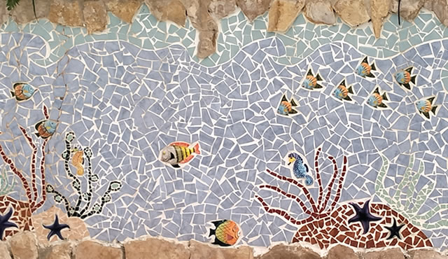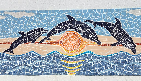 O trabalho realizado é inovador e criativo, com destaque para a combinação de cores e a presença do golfinho no painel. Valorizo o uso de materiais reaproveitados (mosaico), que proporcionam durabilidade e facilidade na limpeza. A abordagem artesanal confere um valor significativo a essa obra, tornando-a verdadeiramente única.