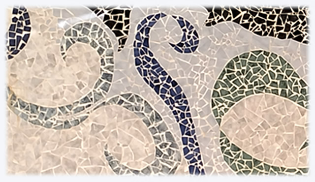 Aplicação de mosaico partido colado diretamente na parede
